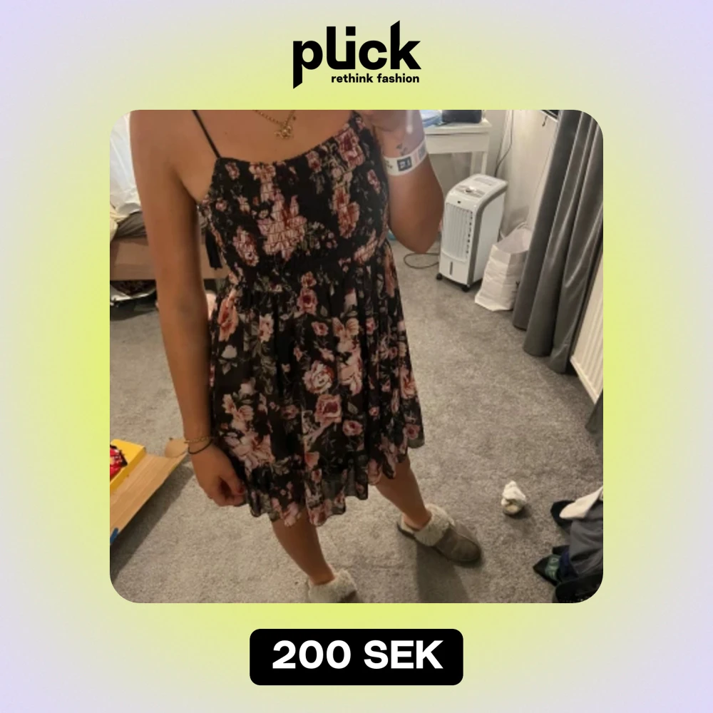 Säljer en fin blommig klänning , använd en gång
