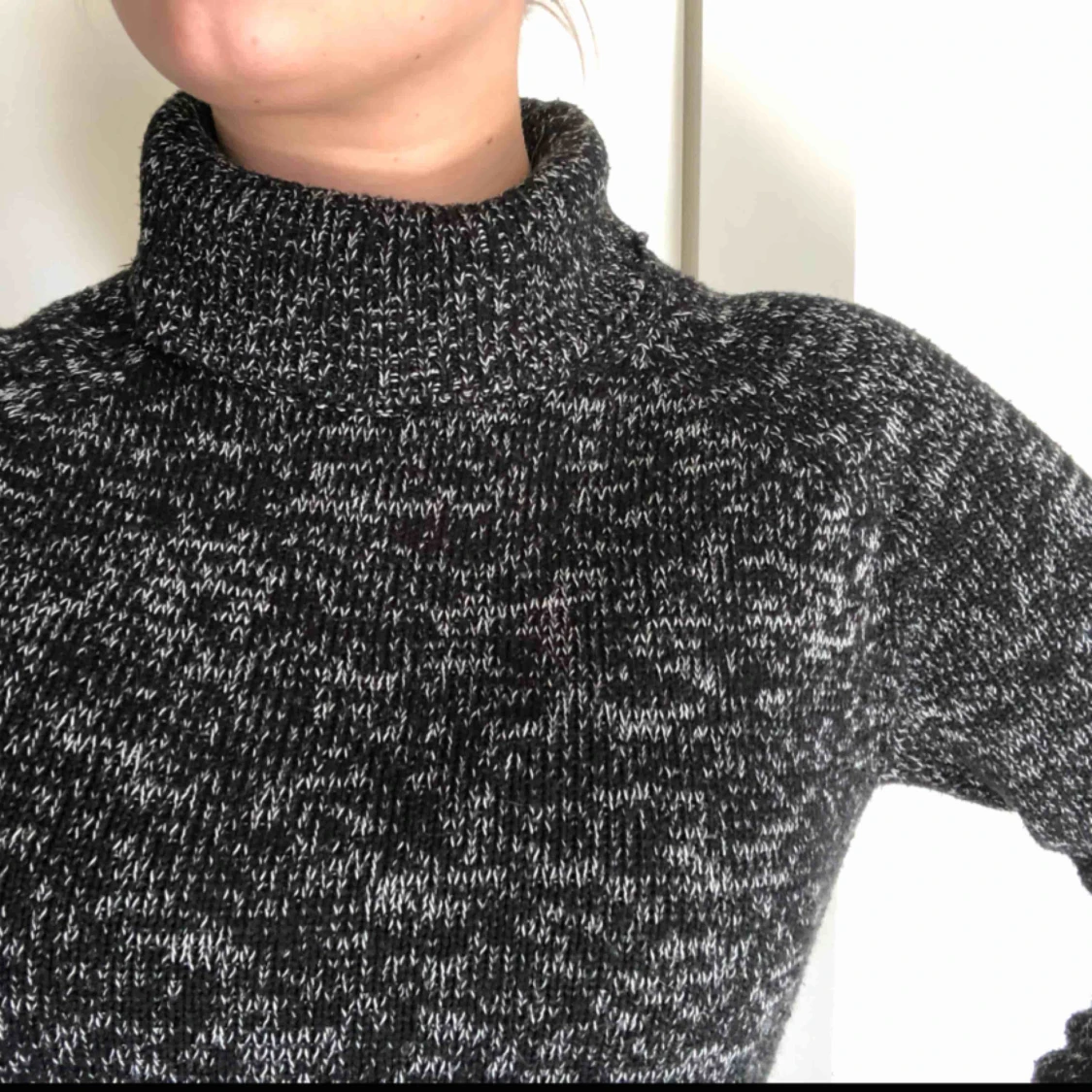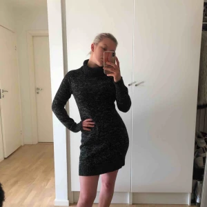 Stickad poloklänning i svartgrå färg. Perfekt att användas till höst eller vinter. Säljer pga att den inte används. Kan mötas upp i sthlmområdet och tar swish!