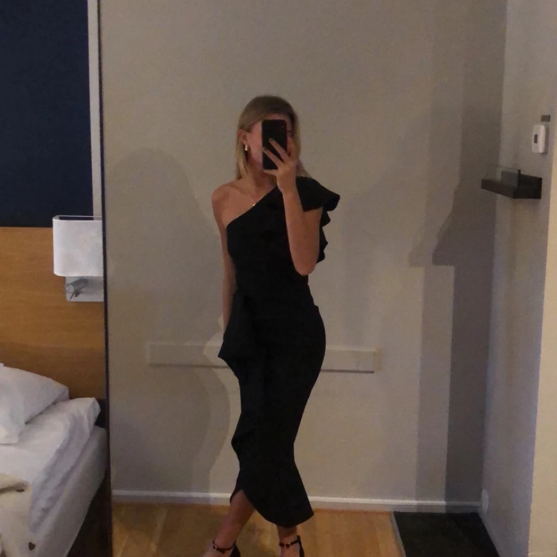 Säljer denna super snygga klänning med volang som jag har på mig 1 gång på ett speciellt tillfälle. Kommer inte att användas igen, helt ny skick. Den är tajt.