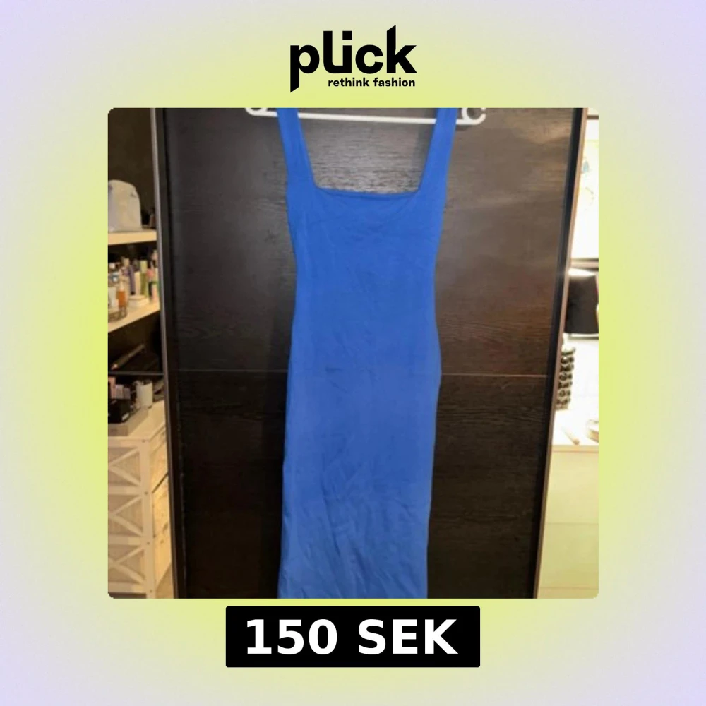 Snygg blå långklänning med breda axelband och fyrkantig urringning. Perfekt för en stilren look.