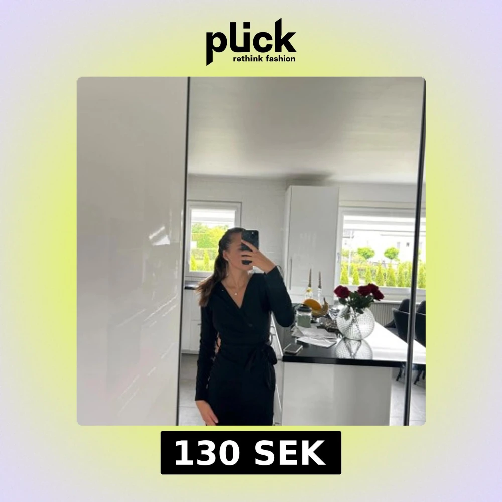 Snygg svart omlottklänning med långa ärmar och knytband i midjan. Klänningen har v-ringning och markerad midja som ger en stilren och elegant look. Perfekt för dig som gillar klassiska och tidlösa plagg.
