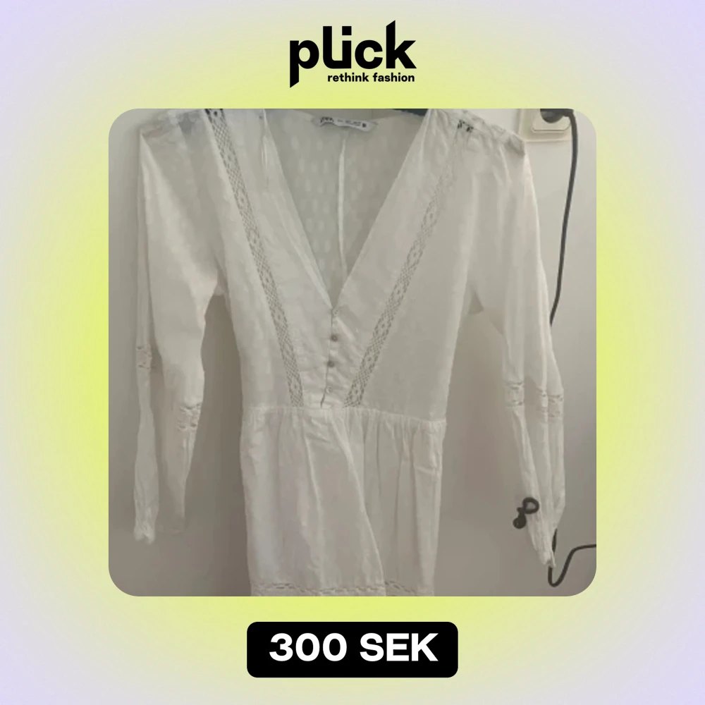 Jätte fin klänning som har detaljer och broderat tyg. Den är tajtare vid midjan och har knappar där fram. Från zara