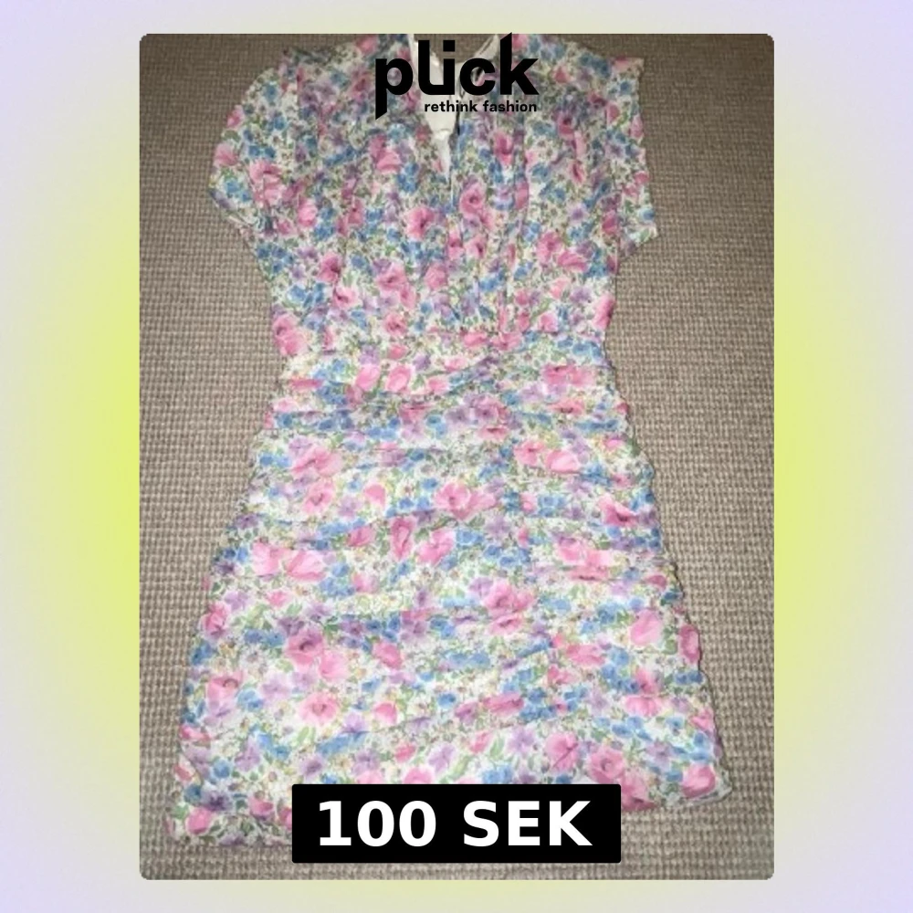 Säljer en söt kortklänning från Zara med färgglatt blommigt mönster i rosa, blått, lila och vitt. Klänningen har korta ärmar, v-ringad hals och är gjord i ett lätt och skönt material som passar perfekt till varmare dagar.