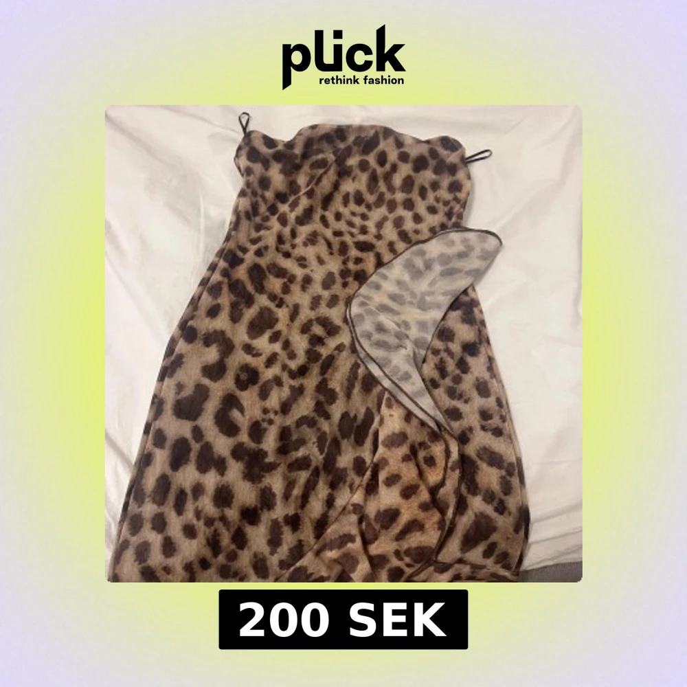 Säljer en superfin kort klänning med leopardmönster och tunna axelband. Klänningen har volangdetalj framtill och sitter snyggt figurnära. Perfekt för dig som vill sticka ut och älskar djurmönster. Materialet känns lätt och luftigt.