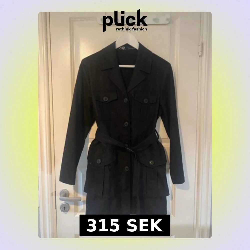 Helt ny och oanvänd. Jätte fin trenchcoat som man även kan använda som klänning (tycker personligen den passar mer som klänning). 4 riktiga fickor fram och knäpps med knappar. Den formar kroppen fint och har skärp i midjan. Linne material så den är luftig och härlig. Passar även mig som brukar ha S.😊