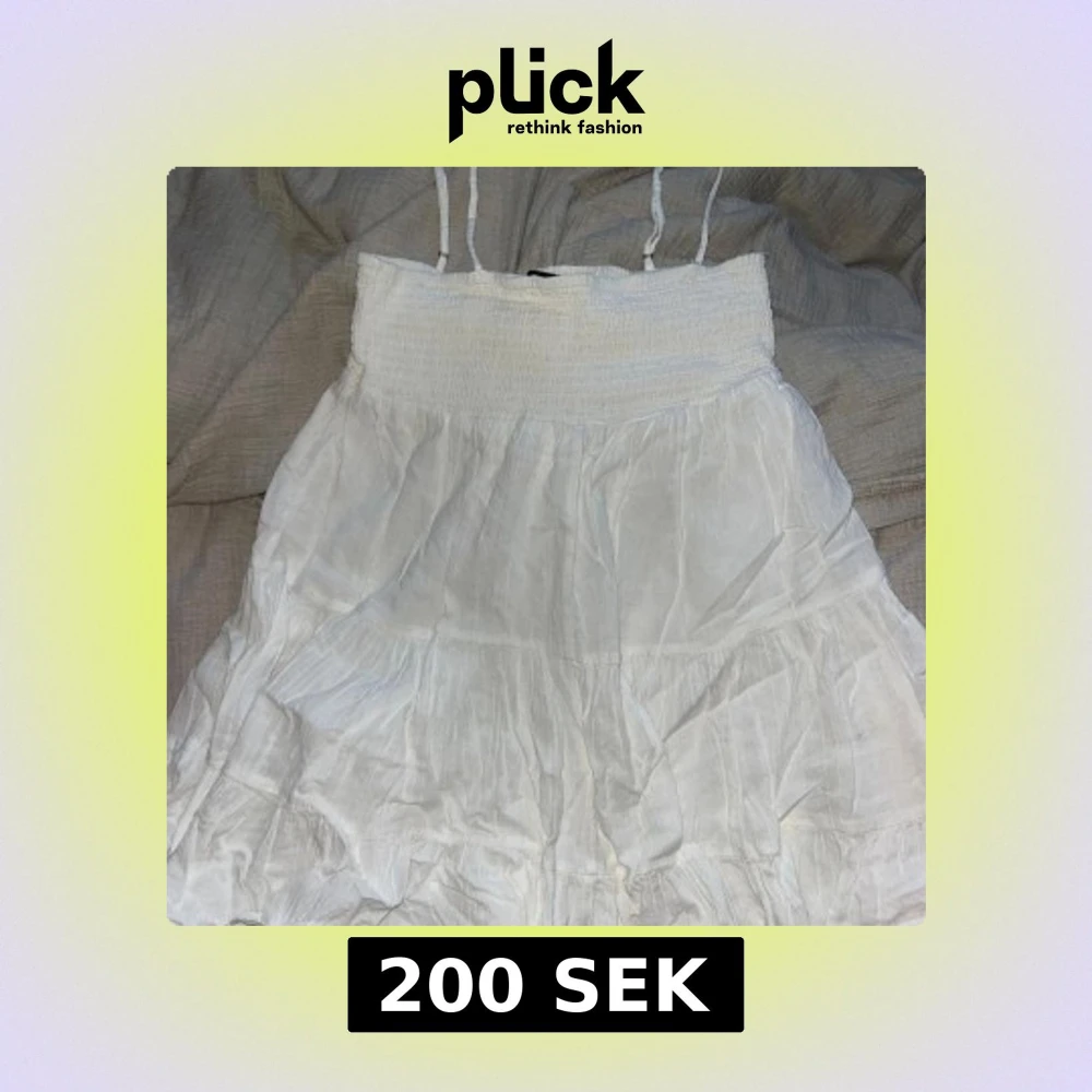 Säljer en söt vit klänning från Zara med smala axelband och smockad överdel. Klänningen har en luftig och fladdrig kjol som ger en romantisk känsla. Perfekt för varma sommardagar!