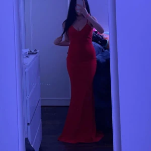 Röd balklänning - Säljer denna superfina balklänning då jag tyvärr har hittat en annan. Klänningen är endast testad 1 gång och är köpt för 1579kr ink tullar. Storleken är 36/S men skulle nog säga att den passar dig som har 38/M också! Som referens är jag 162cm❤️🌟