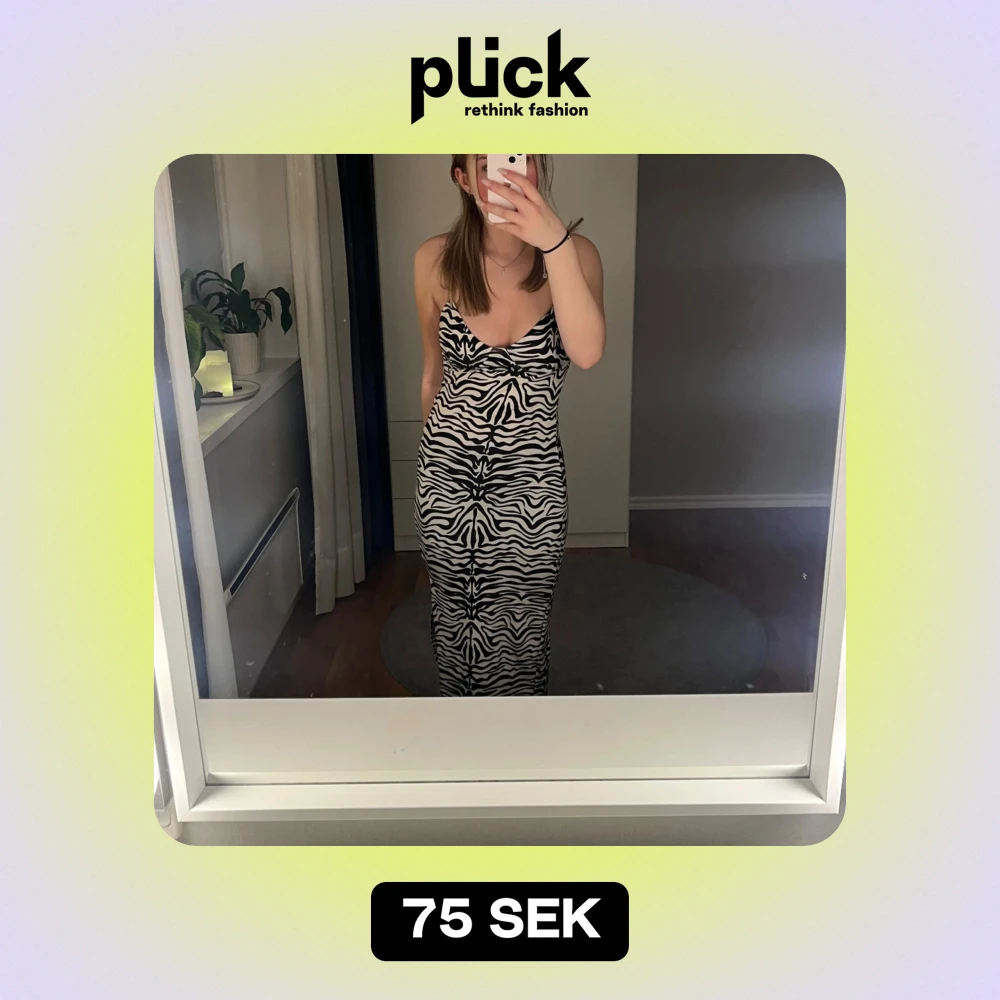 Snygg zebramönstrad långklänning med smala axelband och en tight passform. Perfekt för en utekväll eller fest! Klänningen har en djup v-ringning och är gjord i ett mjukt och stretchigt material för bästa komfort. Även slits på sidan