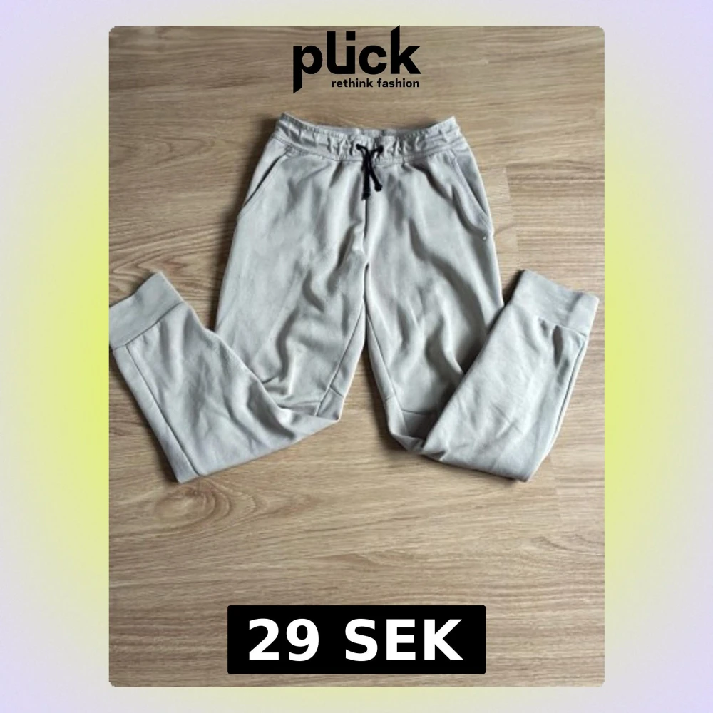 Säljer ett par ljusgrå mjukisbyxor med svarta snören i midjan och muddar vid bensluten. Byxorna har två sidofickor och är tillverkade i ett mjukt och bekvämt material, perfekta för chill dagar hemma eller när du vill vara extra comfy.Plagget kommer från ett rök nikotin och pälsfritt hem, tröjan kommer att tvättas och strykas så att den är ren när den kommer fram till er