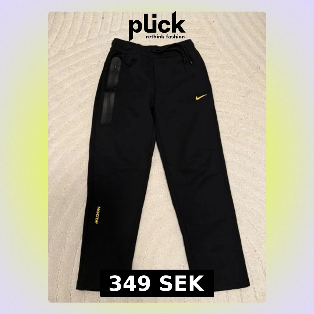 Svarta mjukisbyxor från Nike och NOCTA med gul logga och detaljer. Byxorna har dragsko i midjan, en dragkedjeförsedd ficka och tryckta gula texter på benen. Tillverkade i mjukt material för maximal komfort och stilren look.