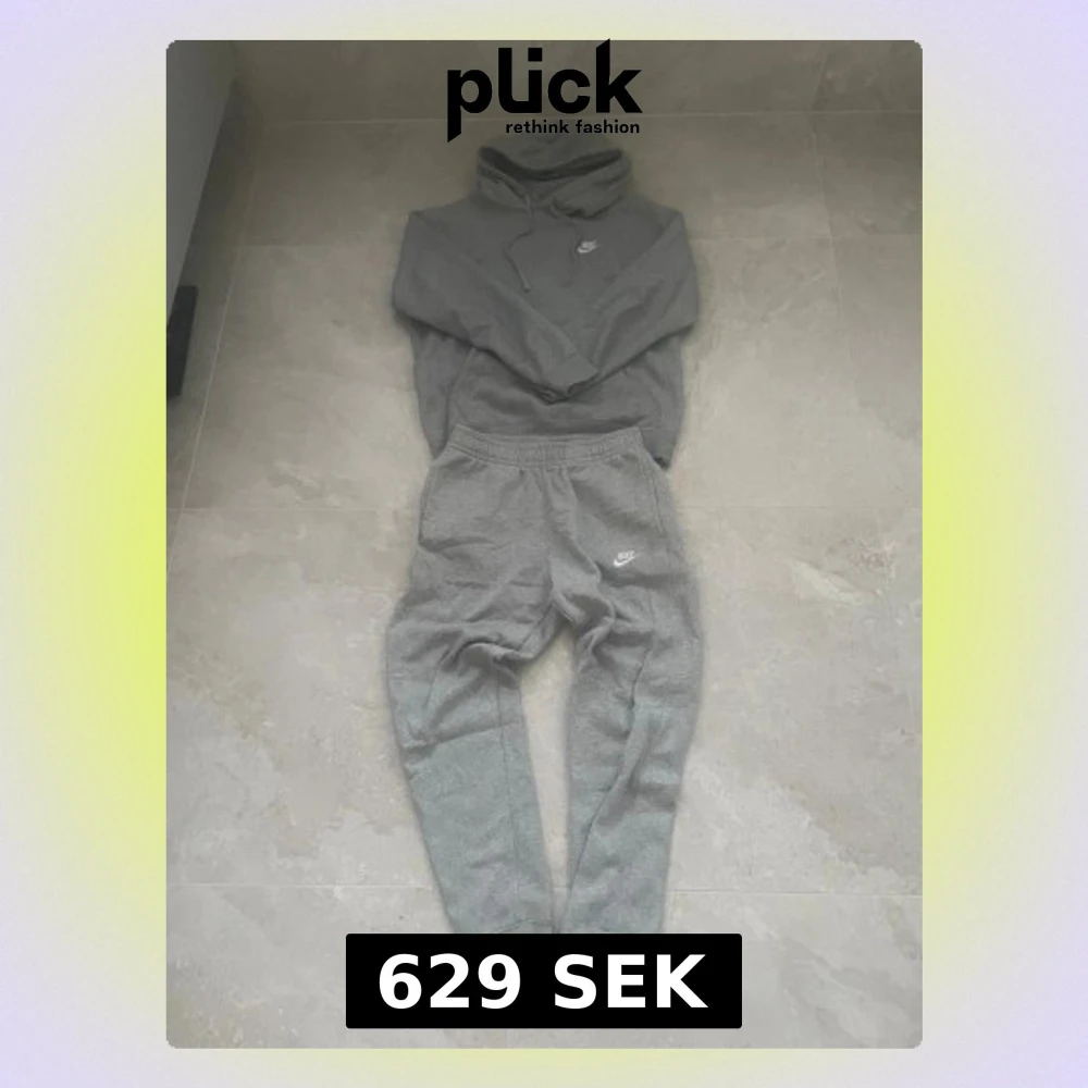 Säljer en grå tracksuit från Nike med klassisk logga broderad i vitt på benet och på tröjan. Storleken på tröjan är XS men skulle säga att den är närmare S, storleken på byxan är S. Skicket är mycket bra. Pris går att diskutera☺️
