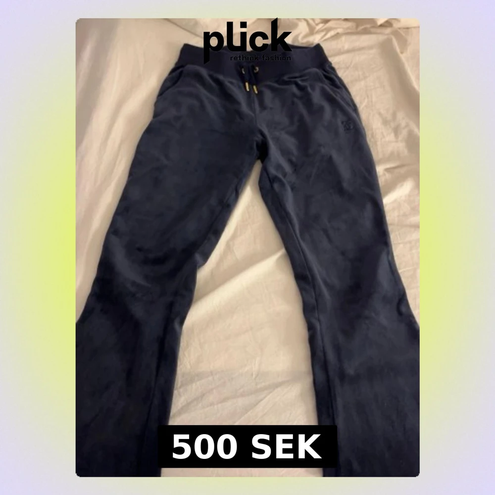 Marinblått juicy set. Ingen text på rumpan. Väldigt lågmidjat. Tröjan är i XS och byxorna i S.