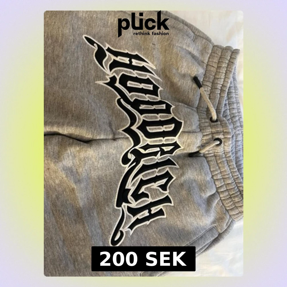 S men känns störreSäljer ett par gråa mjukisbyxor från Hoddlich med stor svartvit logga framtill. Byxorna har resår och dragsko i midjan samt sidofickor. Tillverkade i mjukt sweatshirtmaterial, perfekta för chill dagar.