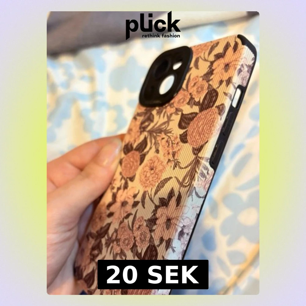 Snyggt mobilskal med blommigt mönster i rosa och beige toner. Skalet har en matt, lätt räfflad yta och svarta detaljer runt kameran. Passar perfekt för dig som vill ha en stilren och trendig look på mobilen.