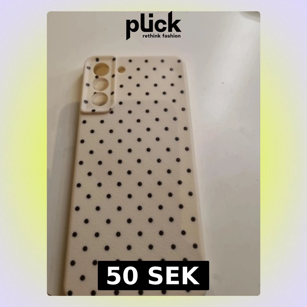 Snyggt beige mobilskal med svarta prickar i ett prickigt mönster. Skalets material känns mjukt och flexibelt, troligen silikon eller TPU. Passar en mobil med tre kameralinser och en blixt. Perfekt för dig som vill ha ett unikt och trendigt skal. Är från fyndiq och är i storleken samsung s21 5g. Alldrig använd då jag råkade köpa fel storlek !