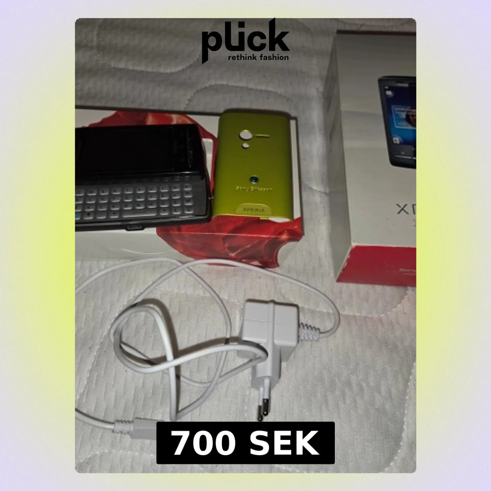 Säljer en Sony Xperia Android-telefon i en unik grön färg med QWERTY-tangentbord och tillhörande laddare. Telefonen har en kompakt design och bakstycket är gjort i plast. Perfekt för dig som gillar fysiskt tangentbord och smidig mobil.