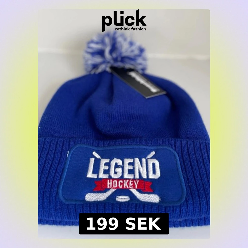 Säljer 4 st stickade mössor från Legend hockey med broderad patch. Finns i blått, svart, blå-grå och grått, med stor tofs upptill. Perfekt för dig som gillar hockey och vill ha en sportig stil.