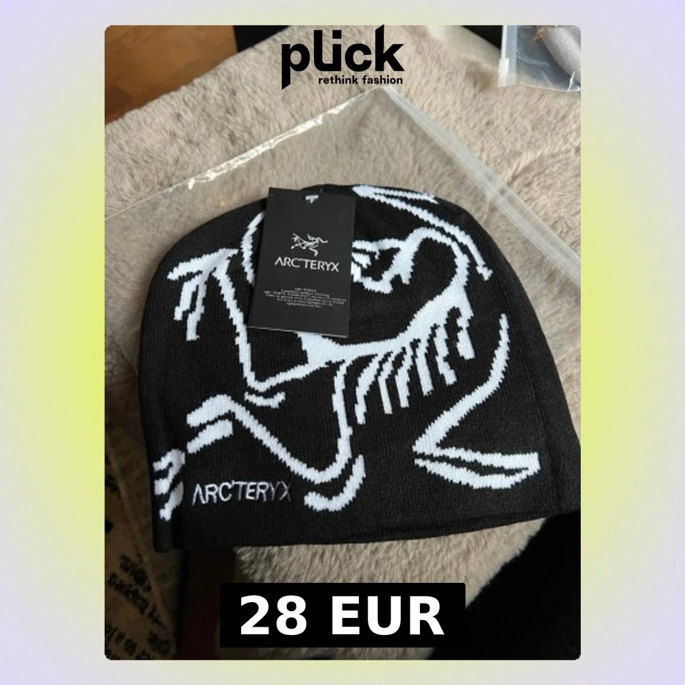 Snygg svart mössa från Arc'teryx med vit grafisk logga och text på framsidan. Tillverkad i mjukt, stretchigt material som sitter skönt på huvudet. Perfekt för dig som vill ha en stilren och sportig look.