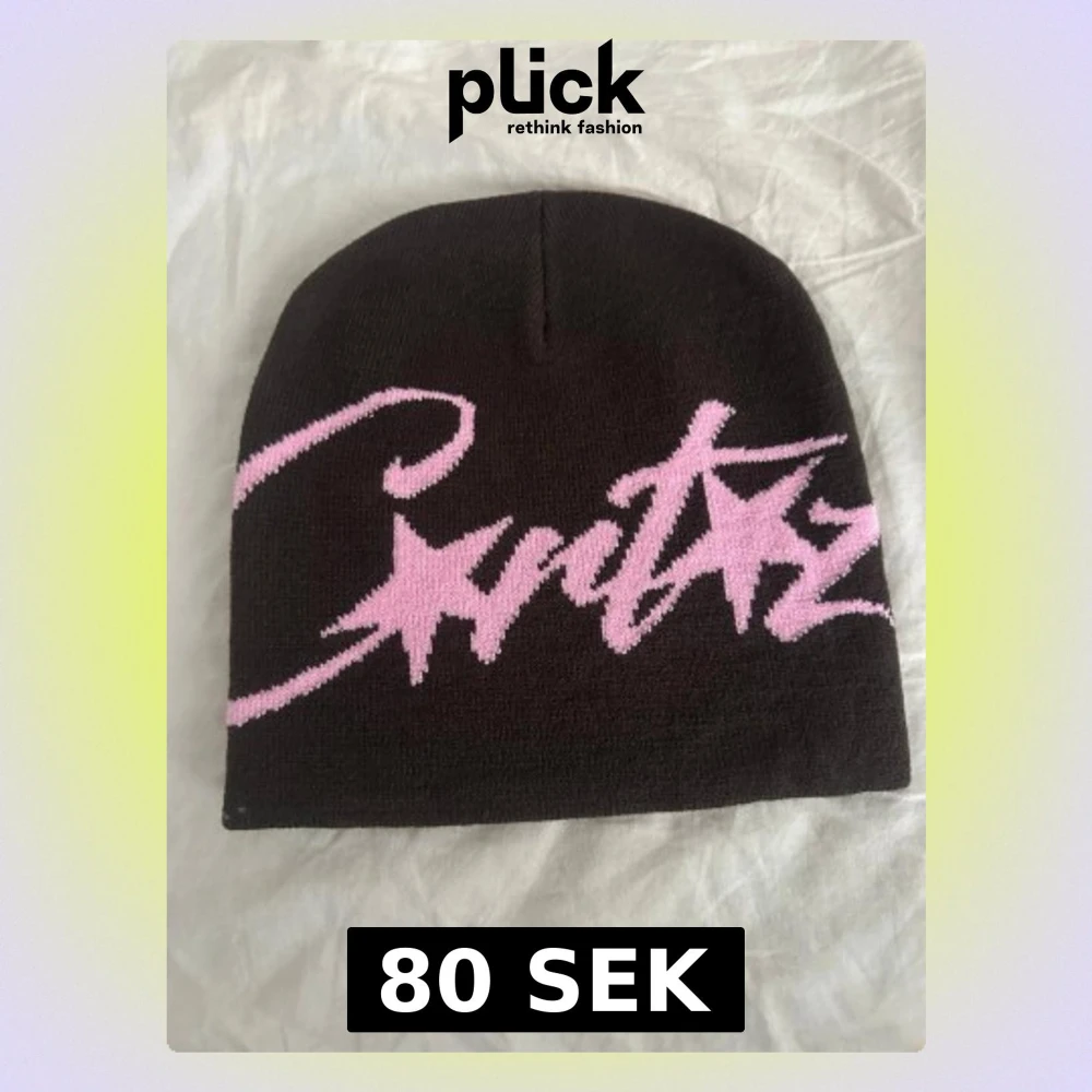 Snygg brun mössa från Caritz med ett stort rosa grafiskt tryck i form av text och stjärnor. Mössan är stickad och har en klassisk, rundad form som sitter skönt på huvudet. Perfekt accessoar för att lyfta din streetwear-look.