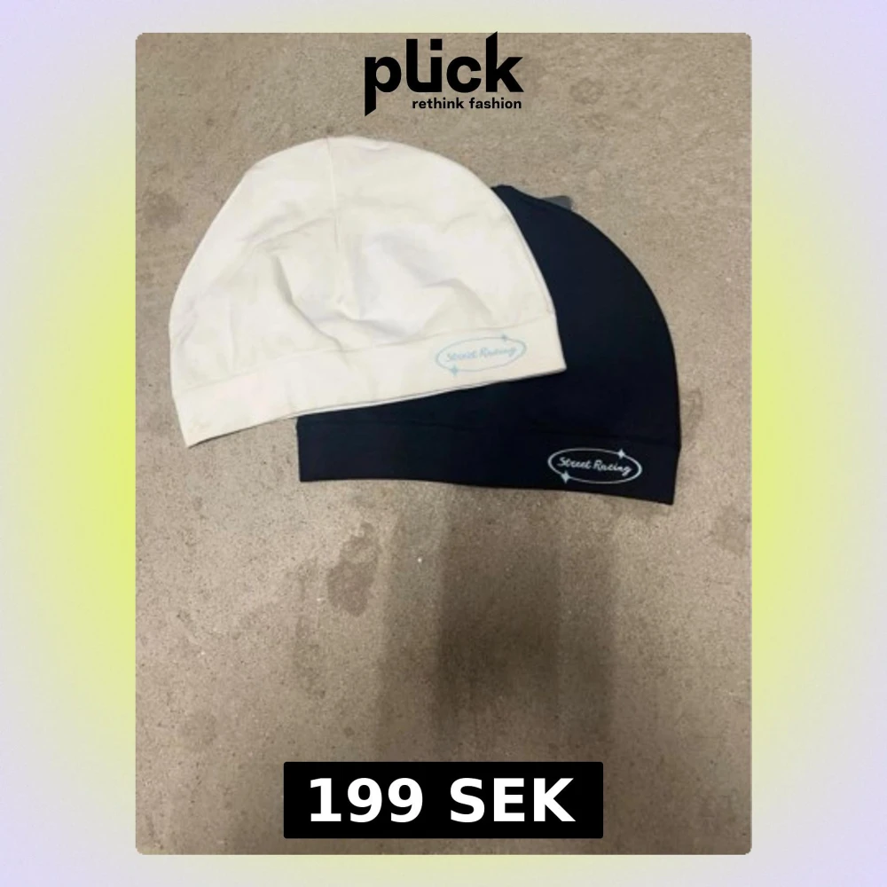 Säljer två släta mössor från Secret Racing, en i beige och en i svart. Båda har logotypen tryckt på framsidan och är tillverkade i ett stretchigt material som sitter snyggt på huvudet. Perfekt för dig som gillar stilrena accessoarer med diskret branding.