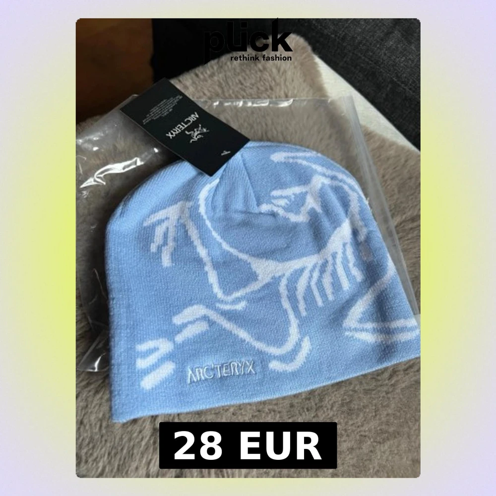 Snygg ljusblå mössa från Arc'teryx med vit logga och stort grafiskt mönster på framsidan. Tillverkad i mjukt, stretchigt material som sitter skönt på huvudet. Perfekt för dig som vill ha en stilren och sportig look.