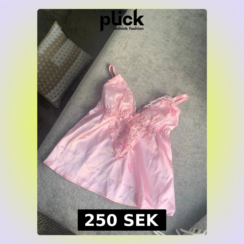 Söt ljusrosa linnetopp med hjärtspets och liten rosett framtill. Tunt, glansigt material och smala axelband. Perfekt för en romantisk look eller som layering-piece.
