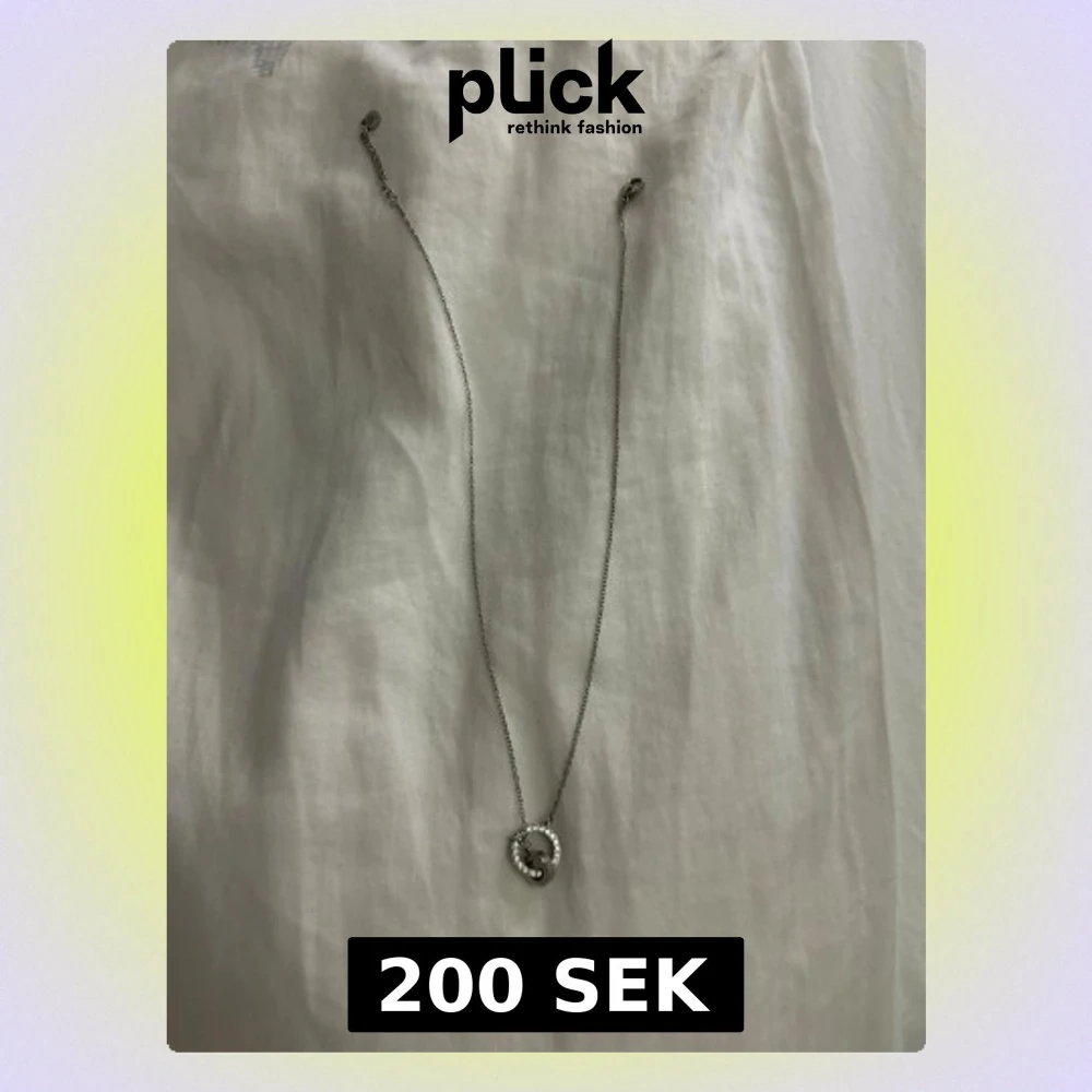 Säljer ett stilrent halsband i silver med en tunn kedja och en cirkelformad berlock dekorerad med små pärlor❤️