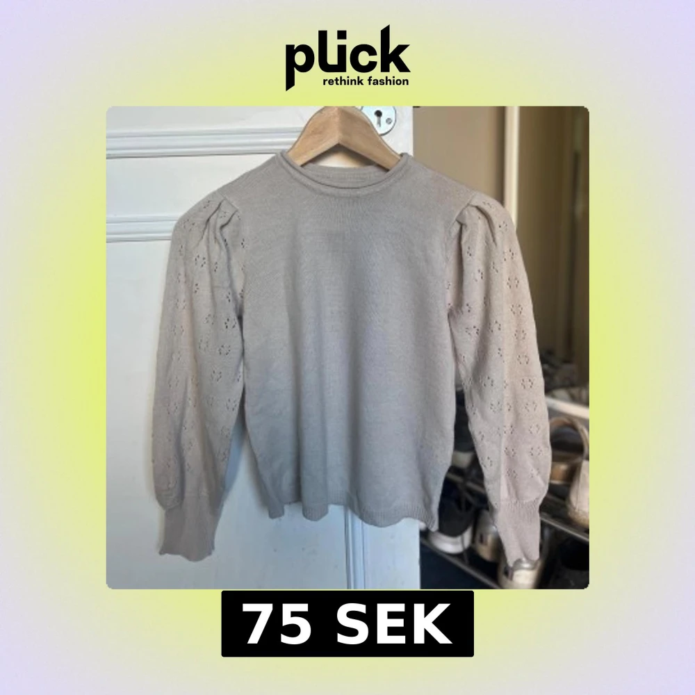 Supersöt beige stickad tröja från Only med puffiga långärmar och diskret hålmönster på ärmarna.