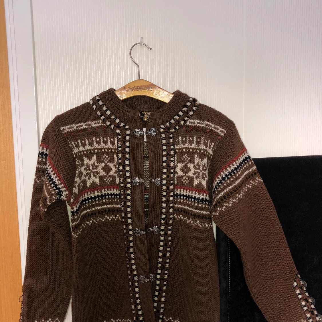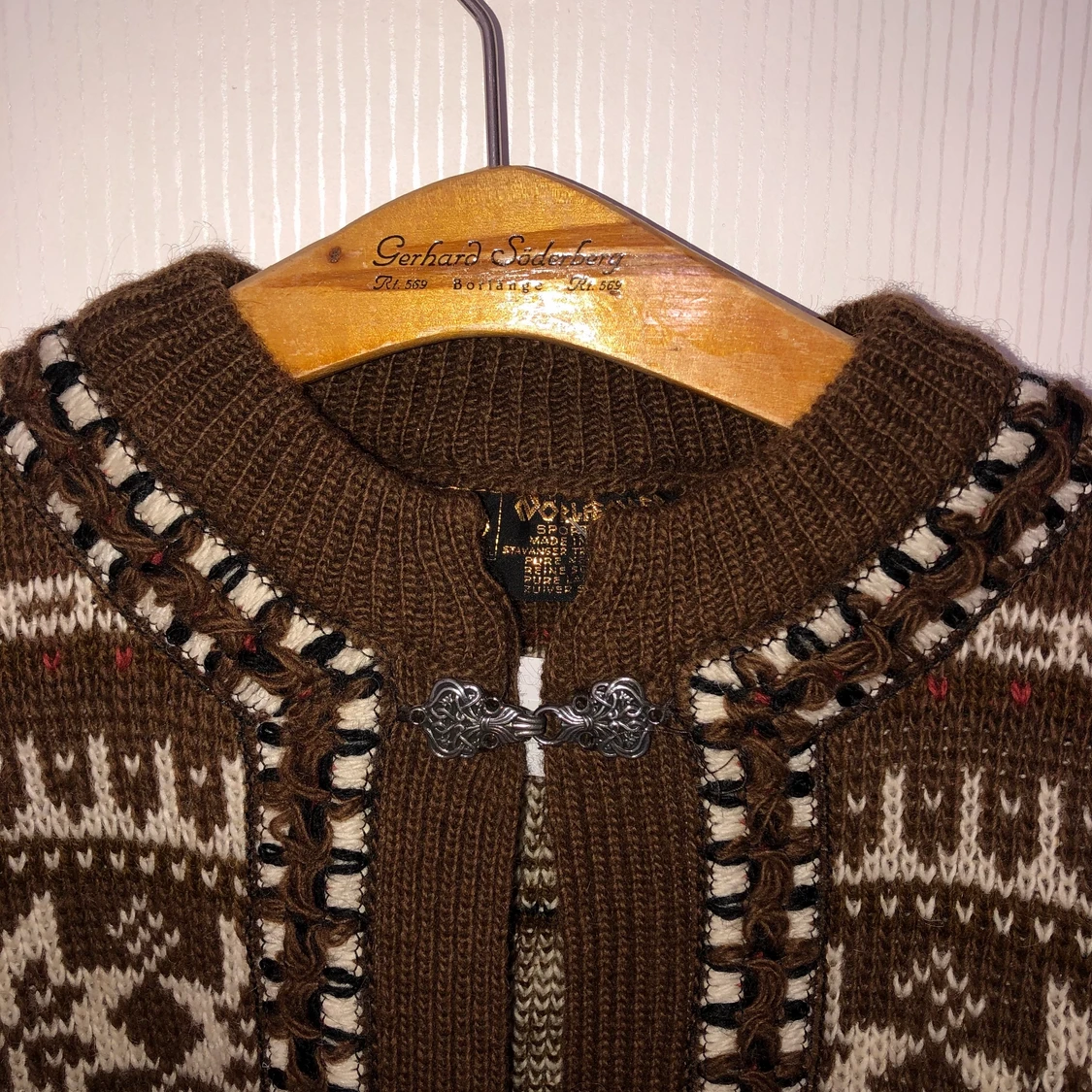 Populär brun ullträja med metallspännet, köpt vintage och prislappen är än sålänge kvar, sitter som S/M! Skitsnygg...gör ont att sälja🥵