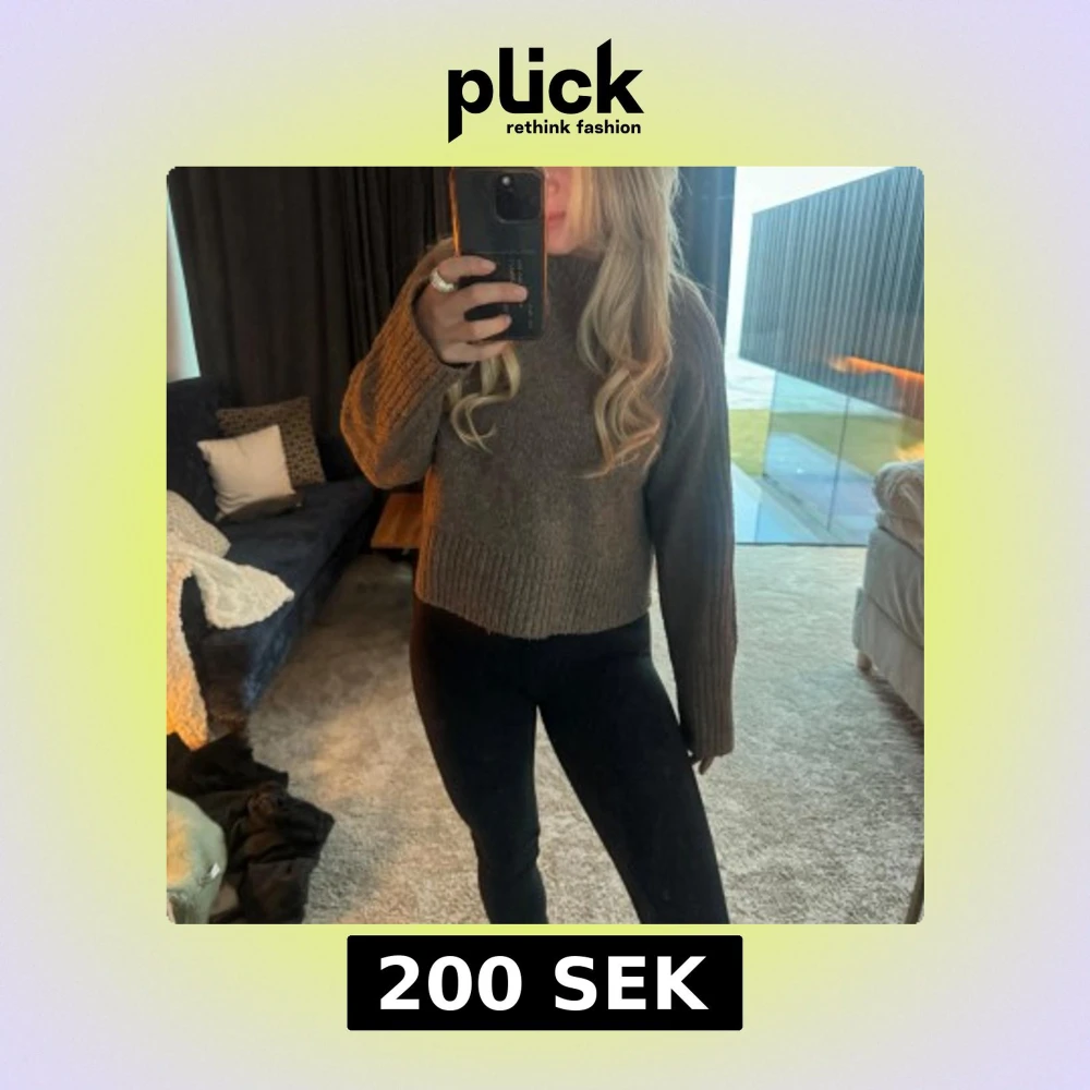 Säljer en mysig brun stickad tröja med ribbade detaljer. Tröjan har långa ärmar, perfekt för kyligare dagar. Passar utmärkt till både jeans och leggings.