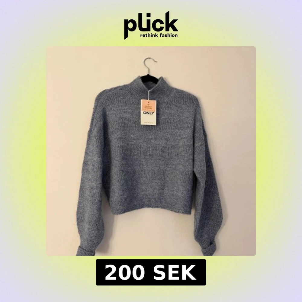 Blå stickad tröja från ONLY med hög hals och långärmad modell. Tröjan är lite kortare i längden.