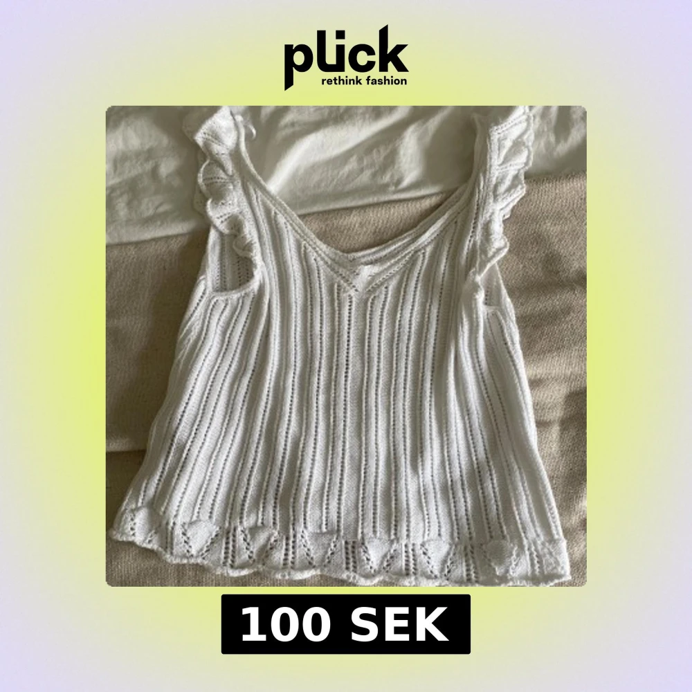 Supersöt vit stickad linnetopp från ONLY med volangdetaljer vid axelbanden och v-ringad hals. Toppen har ett ribbat mönster och är ärmlös, perfekt för varma dagar. Materialet är mjukt och luftigt, vilket gör den skön att bära.