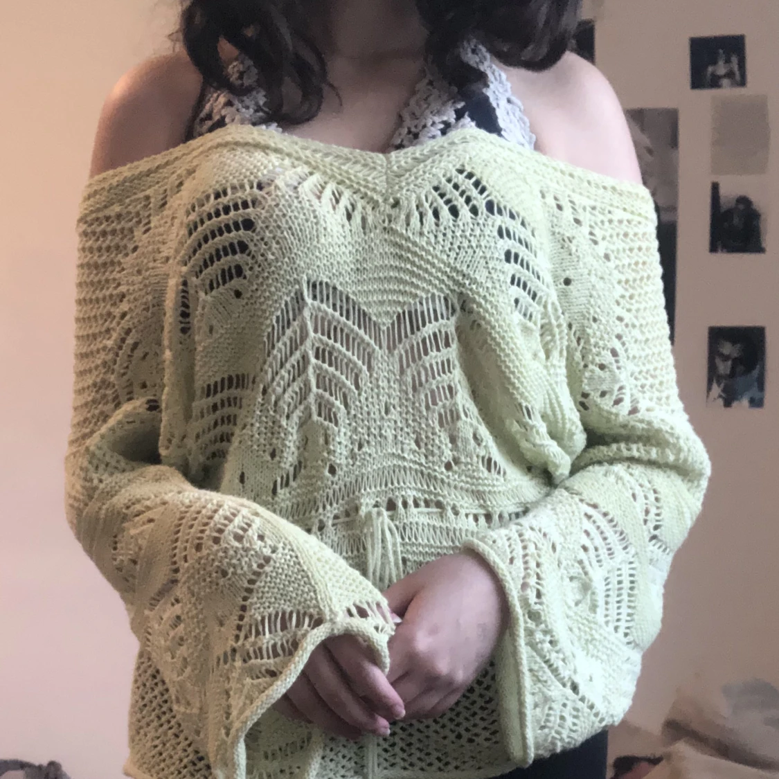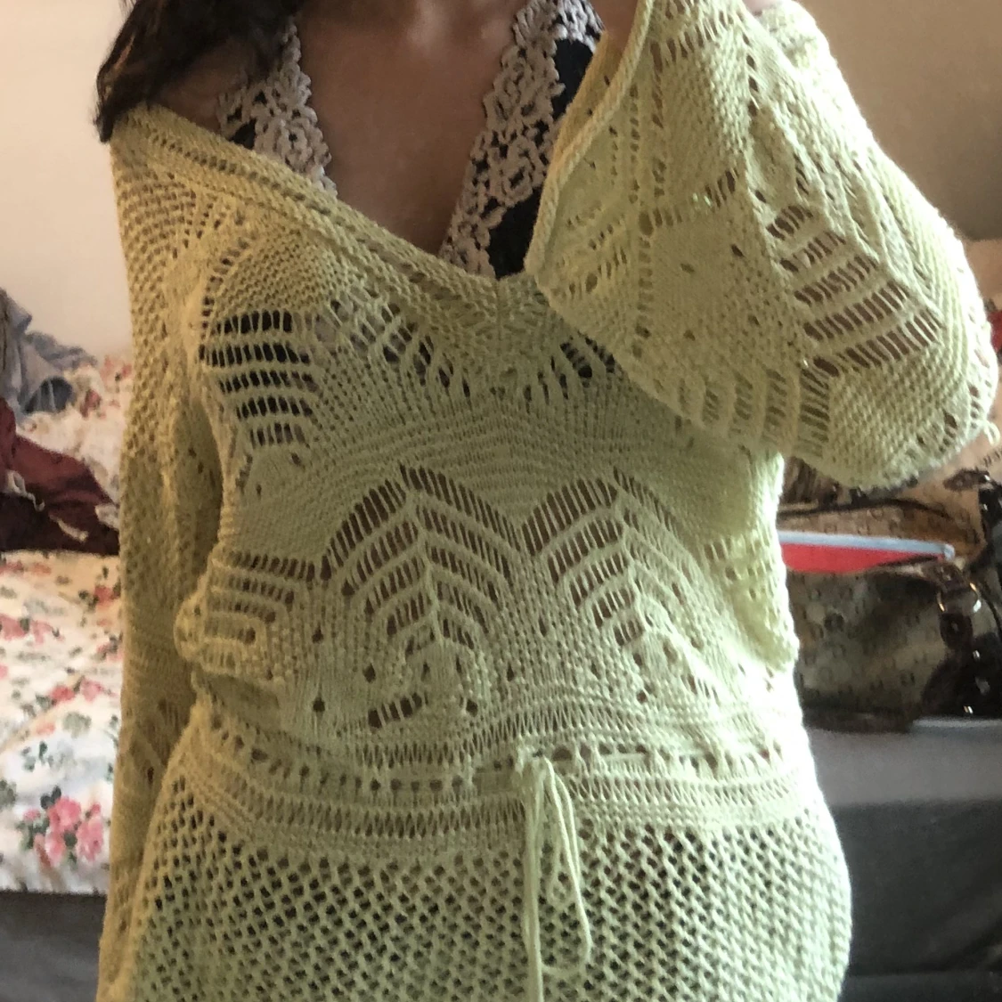 Super söt grön stickad beach-top, snygg mycket ljusgrön färg/ton som sitter som M/L. Skriv vid frågor :)