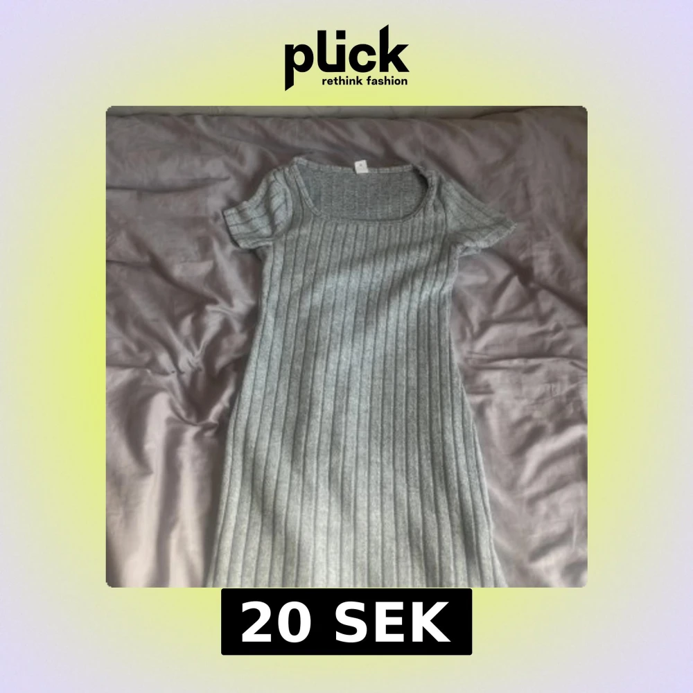 Supermjuk ljusgrå stickad klänning med ribbat mönster och korta ärmar. Klänningen har rund halsringning och en slits på sidan för extra rörelsefrihet. Perfekt för en chill och stilren look.