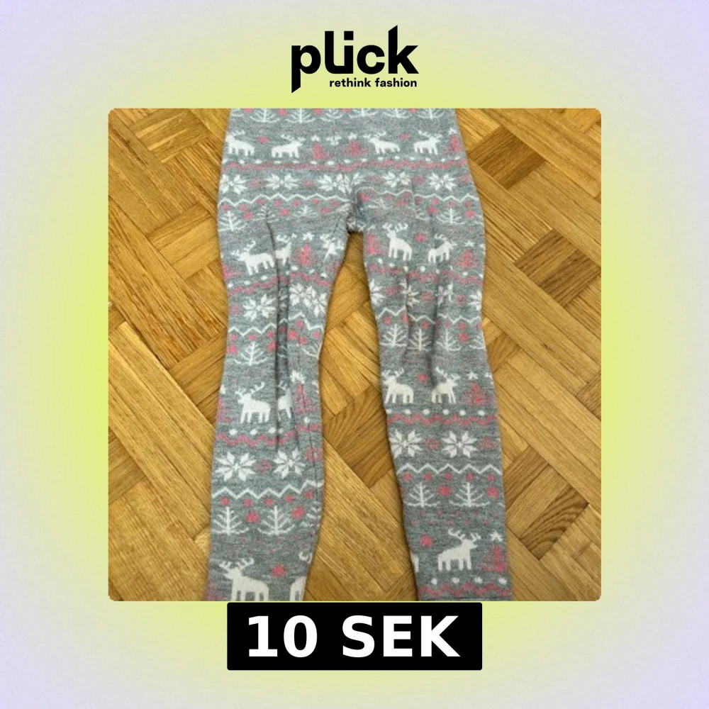 Supermysiga grå leggings från Lupilu med juligt mönster i vitt och rosa, med snöflingor, granar och renar. Stickad känsla och stretchig passform, perfekta för vintermys. Materialet är en blandning av viskos, polyester och polyamid.
