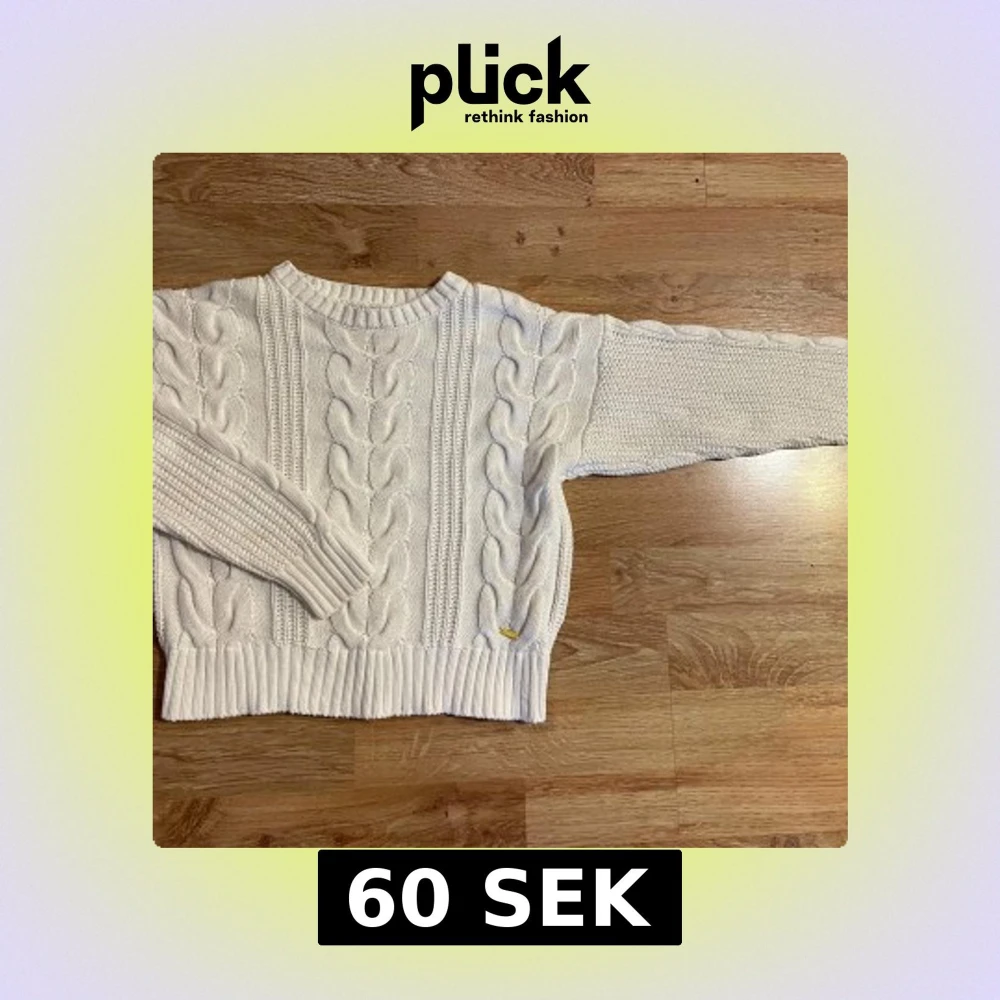 Säljer en mysig vit stickad tröja med flätmönster. Tröjan har en rund halsringning och ribbstickade muddar vid ärmslut och nederkant. Perfekt för kyliga dagar!