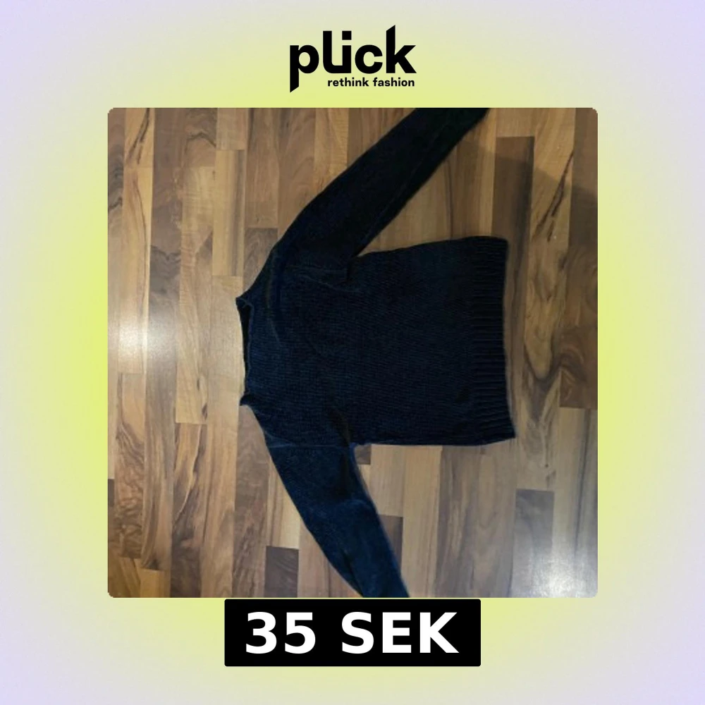 Säljer en svart stickad tröja med långärmad passform och bred ribbad kant vid nederdelen. Tröjan har en enkel, klassisk design och är perfekt för dig som gillar mjuka och sköna material. Passar dig som vill ha en basic men snygg look.