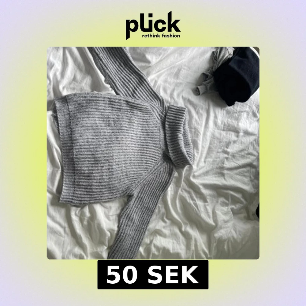 Säljer en chunky grå stickad polotröja från Ü med bred ribbad krage och långa ärmar. Tröjan har en grovstickad struktur och är perfekt för kyliga dagar. Enkel att matcha med jeans eller kjol för en chill look.