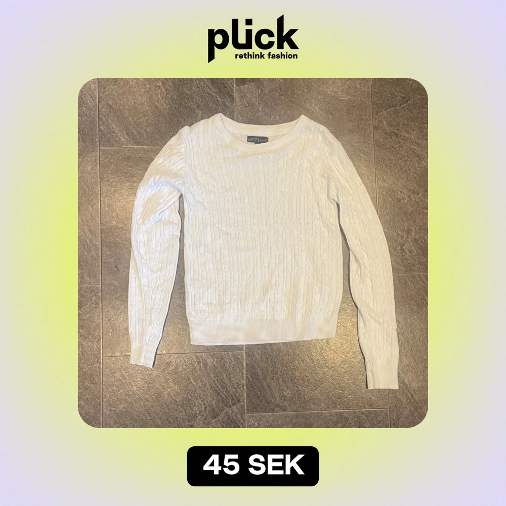 Säljer en superfin vit stickad tröja från XOXO Friends. Den har ett klassiskt flätmönster och är perfekt för både höst och vinter. Tröjan är långärmad och i mycket bra skick. Perfekt för att hålla sig varm och stilren! ❄️