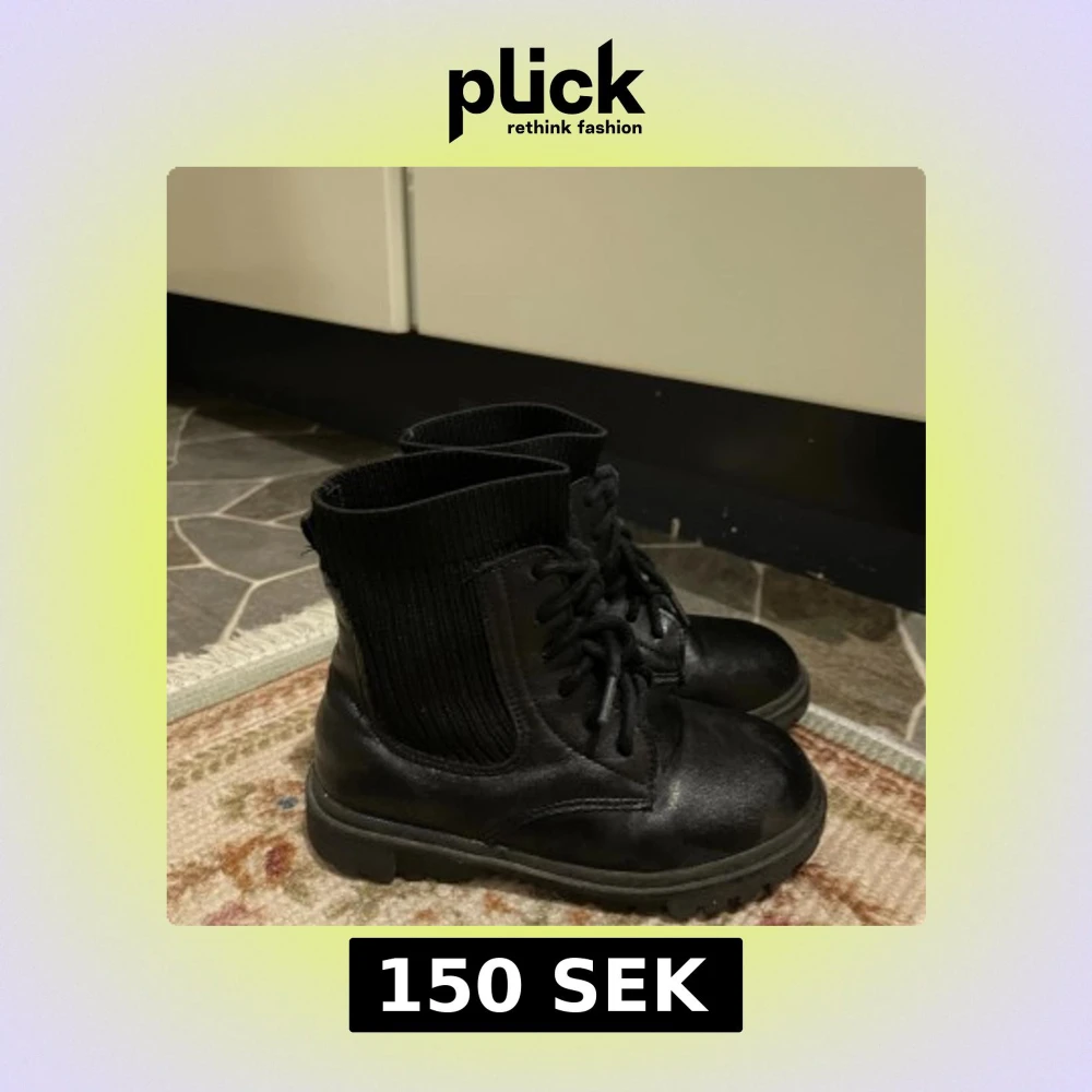 Svarta boots med snörning och stickad skaft