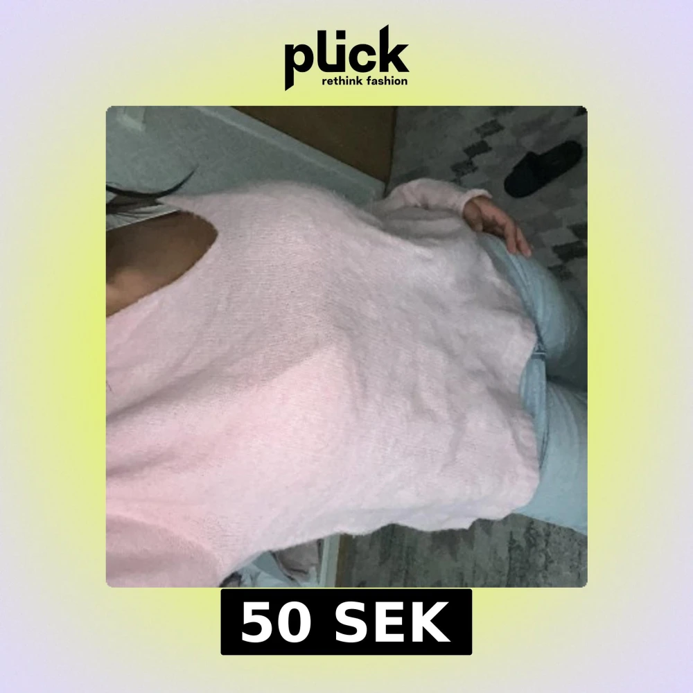 Säljer en supermysig ljusrosa stickad tröja med v-ringad hals. Tröjan har långärmade ärmar och en loose passform som gör den chill och enkel att styla med jeans eller kjol. Perfekt för dig som gillar softa pasteller och vill ha något bekvämt och snyggt.