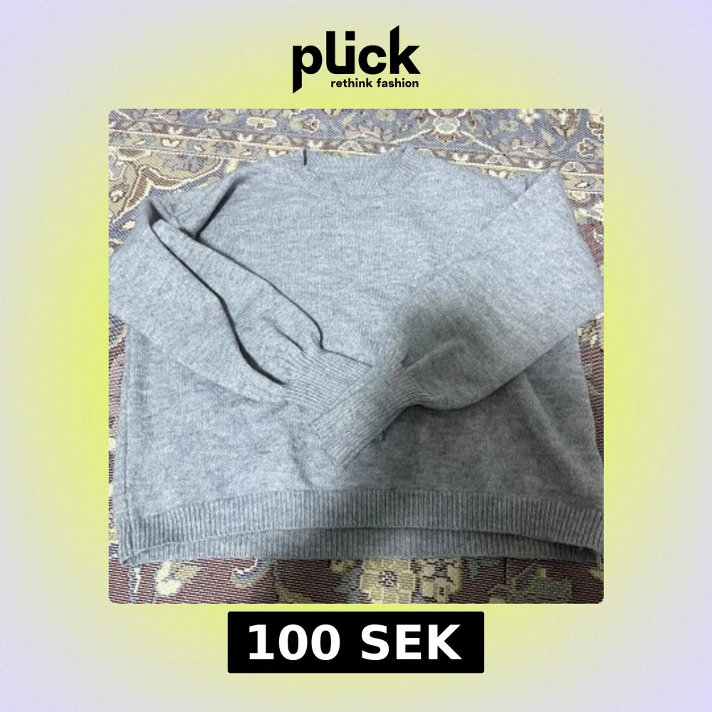 Säljer en s grå stickad tröja med rund hals och långa ärmar. Tröjan har ribbade muddar vid ärmslut och nederkant, vilket ger en klassisk look. Perfekt för kyligare dagar. Ganska skön att ha på sig !
