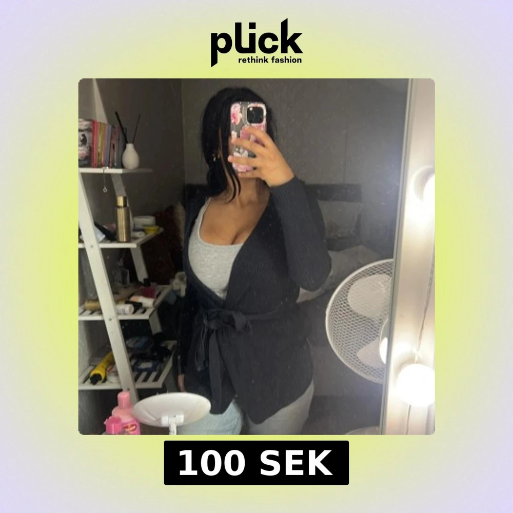 Mysig svart stickad cardigan jacka med knytbälte i midjan. Långärmad och med en snygg, enkel design som passar perfekt till jeans eller leggings. Jackan har en loose fit och är superenkel att slänga på sig när det är lite kyligt ute.