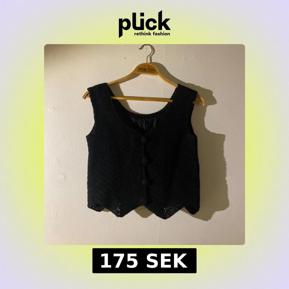 Svart stickad väst med knappar framtill. Handgjord.