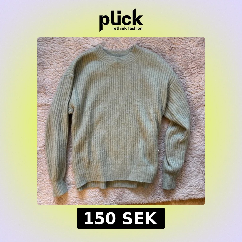 Mysig ribbstickad tröja i ljusgrön, perfekt för kyliga dagar. Tröjan har rund halsringning och långa ärmar med breda muddar. Gosig ull.