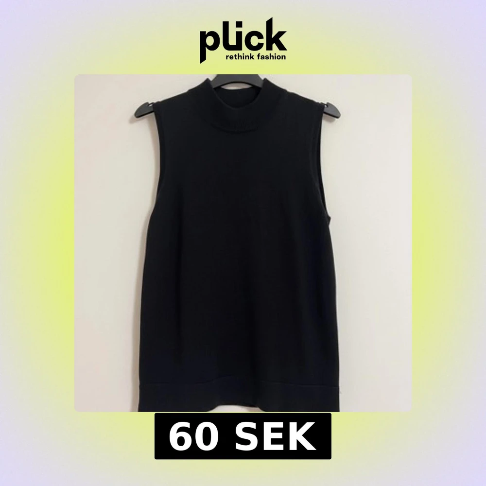 Svart stickad väst från Number One by KappAhl med hög krage och rak passform. Västen är ärmlös och har en stilren, enkel design som funkar till många outfits. Perfekt att slänga över en skjorta eller t-shirt.