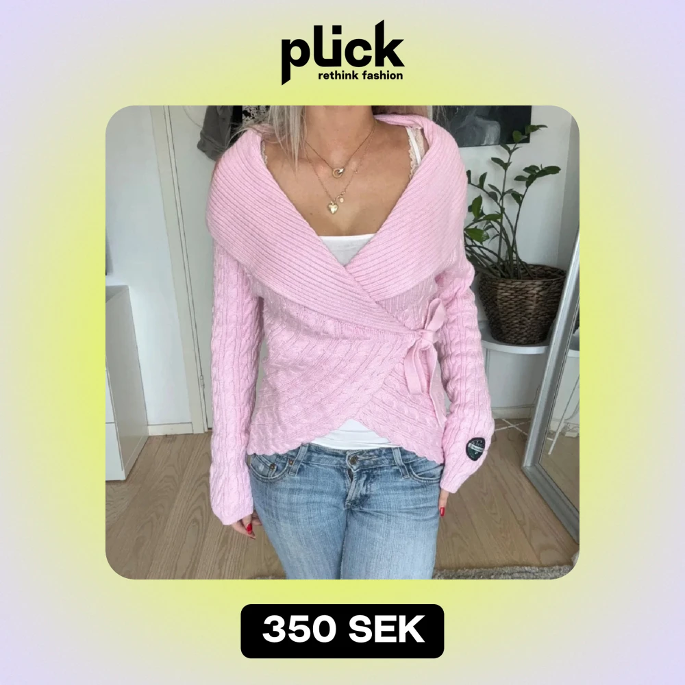 Superfin rosa omlottkofta med knytband i midjan. Den är stickad och har en mysig känsla, perfekt för både vår och höst.