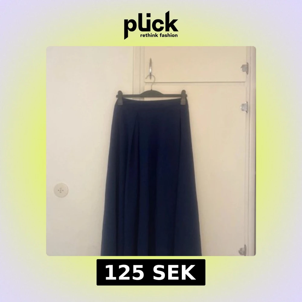 En stilren mörkblå långkjol med snygga veck framtill. Kjolen har en klassisk, vid siluett och hög midja som ger en tidlös look. Perfekt att matcha med en enkel topp eller stickad tröja för en chill och snygg outfit.