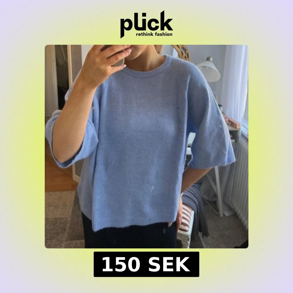 Ljusblå stickad tröja med vid ärm