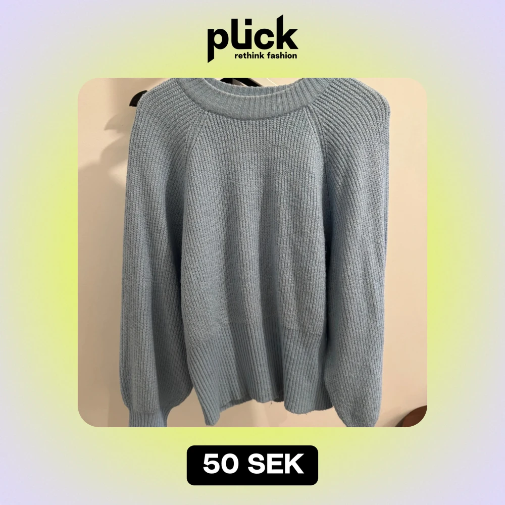 Säljer en supermysig ljusblå stickad tröja. Perfekt för kyliga dagar med sin mjuka och varma känsla. Tröjan har långa ärmar och ribbade muddar som ger en skön passform. Den är i mycket bra skick och redo för nya äventyr! 💙